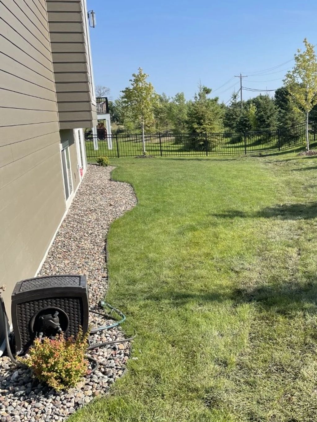 It may seem like this process creates a mess and your yard would be left in bad shape. Here is a picture the day of project completion. The entire width of this backyard was saturated but within 2 weeks of having the french drain installed it was significantly drier and our trench line was not noticeable at all.